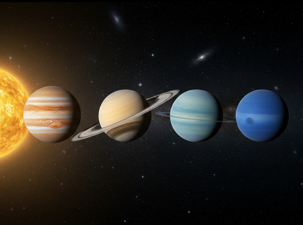 Тези планети са значително по-големи по размер и нямат твърда повърхност в класическия смисъл. Те се състоят предимно от газове като водород и хелий, както и от ледени съединения. Газовите гиганти притежават мощни магнитни полета, сложни атмосферни системи и голям брой естествени спътници.